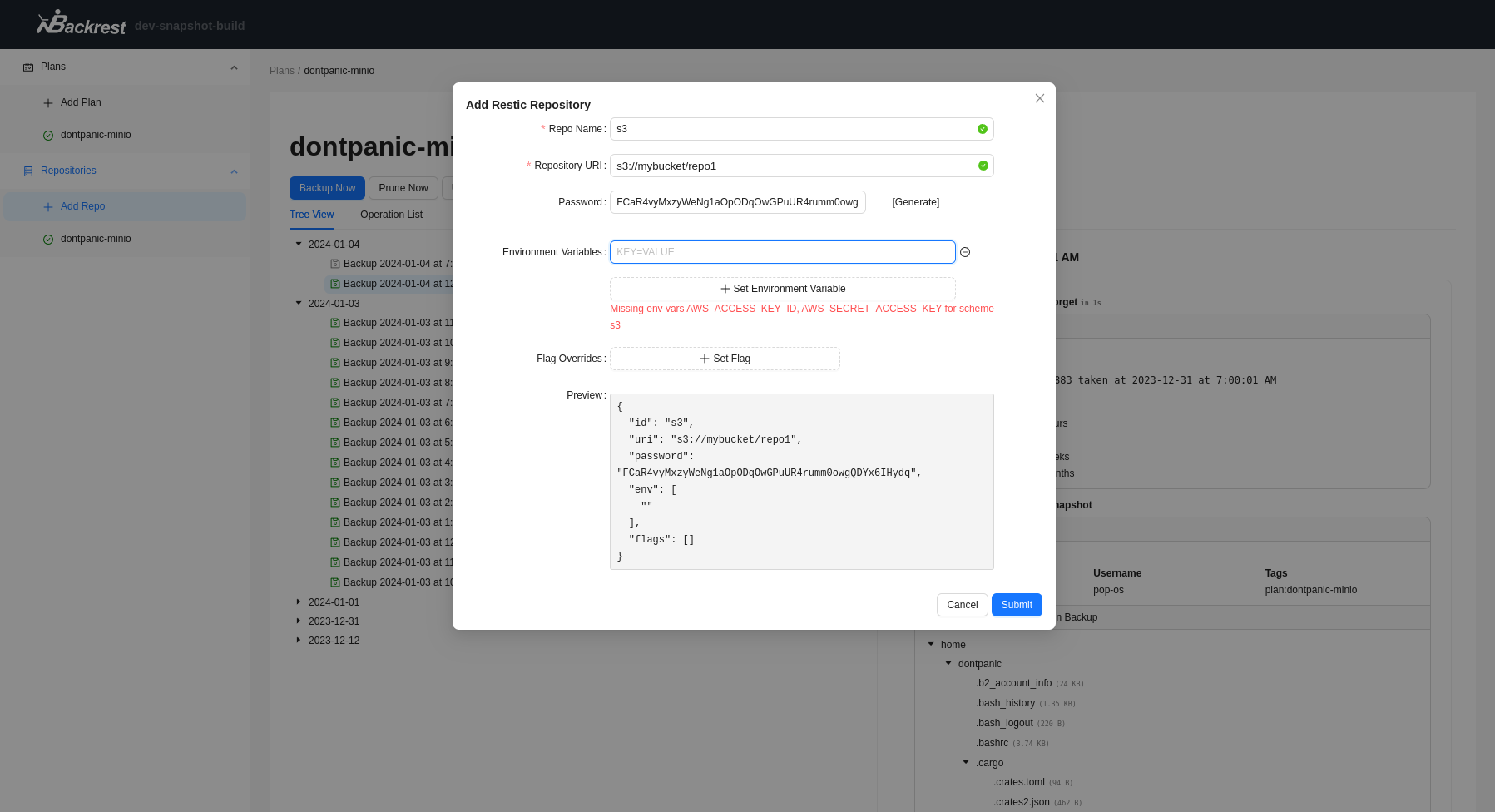Backrest is a web-accessible backup solution built on top of restic and providing a WebUI which wraps the restic CLI and makes it easy to create repos, browse snapshots, and restore files. Additionally, Backrest can run in the background and take an opinionated approach to scheduling snapshots and orchestrating repo health operations.