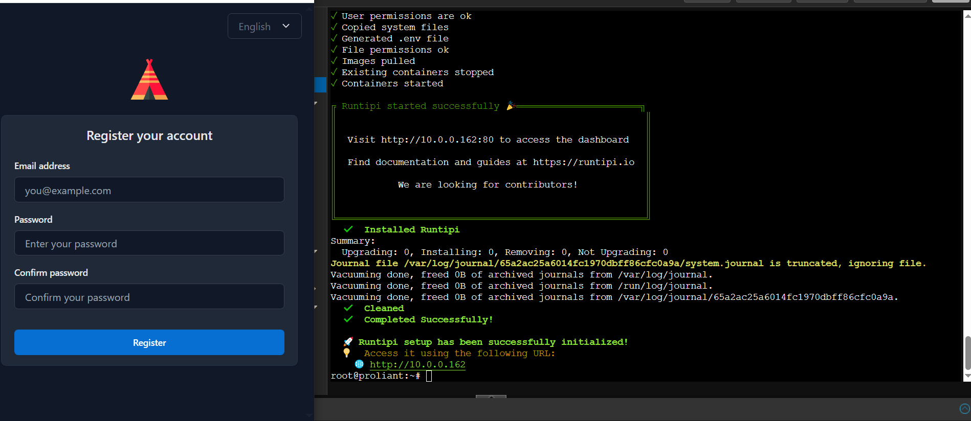 When you go to the lxc nothing is running, ss -tulp only shows ssh and the Runtipi service is not active, I tried several installs and there is some problem with the script.